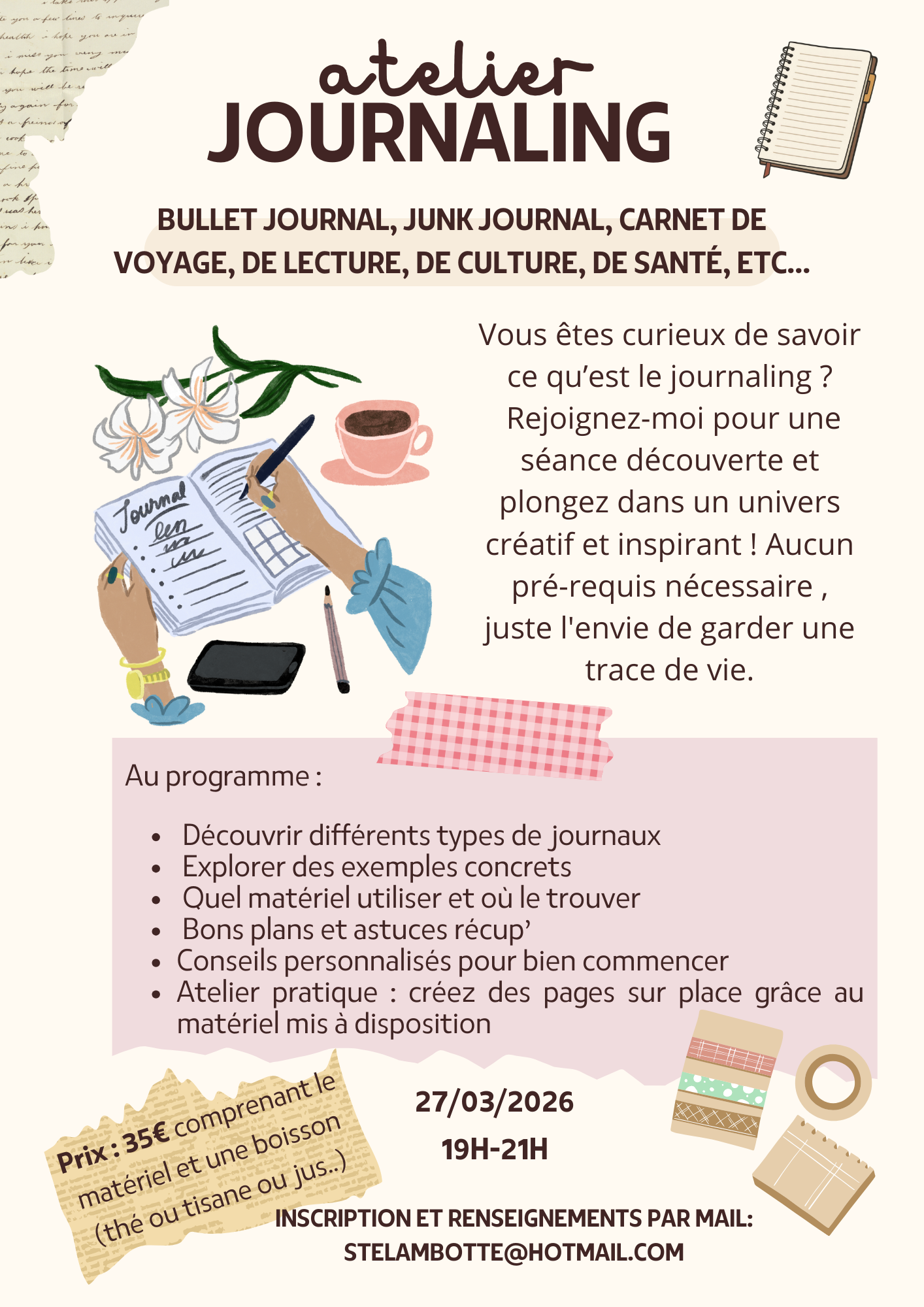 Participez à une séance découverte du journaling, un atelier créatif et pratique accessible à tous pour apprendre à immortaliser vos souvenirs à travers différents types de carnets.