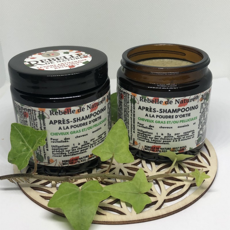 Après-Shampoing artisanal Ortie – cheveux gras & pellicules