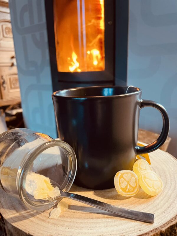 Ingrédients : Miel, Sucre, Sirop de glucose , Acidifiant (citrique) , Arômes naturels, Concentrés (colorant naturellement): carotte, potiron