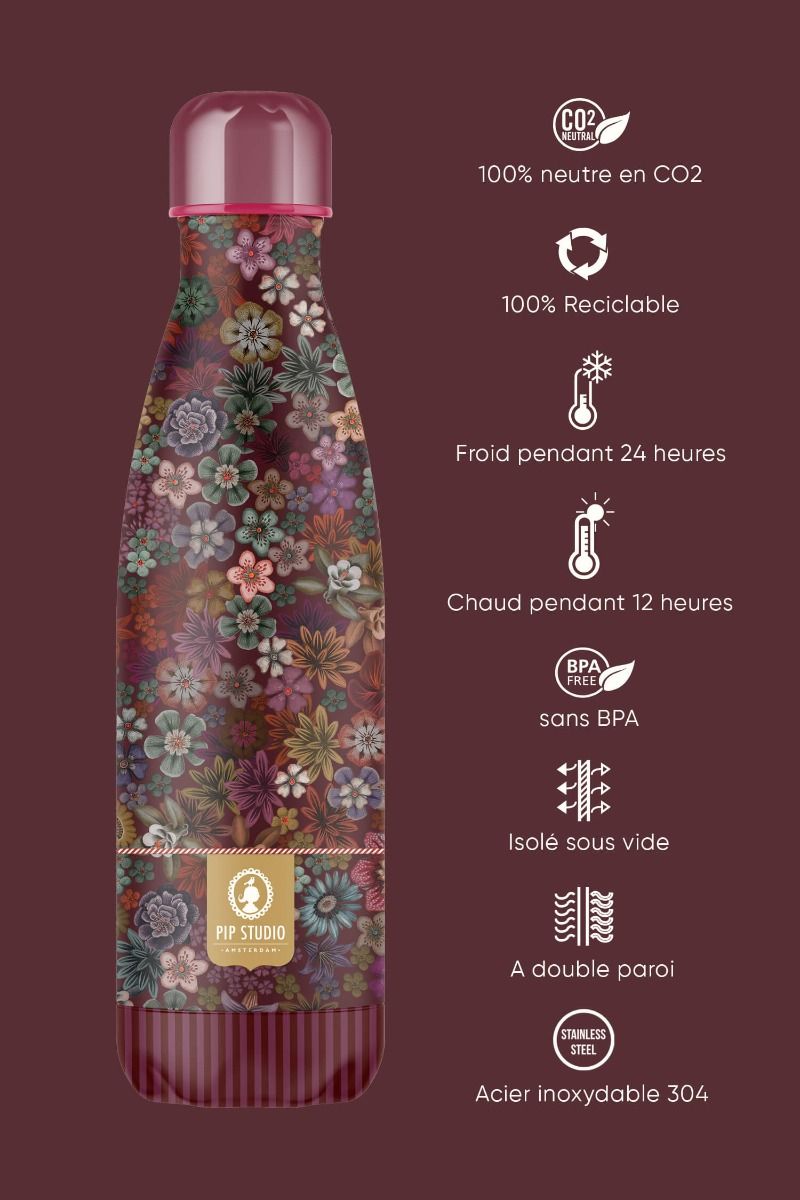 IZY Gourde x Pip Studio décor floral – Gourde – Bouteille thermos 500 ml – Thermos inox – Thermos