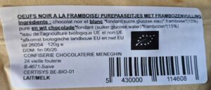 Sachet d’oeufs bio chocolat noir fourrés à la framboise. 120gr