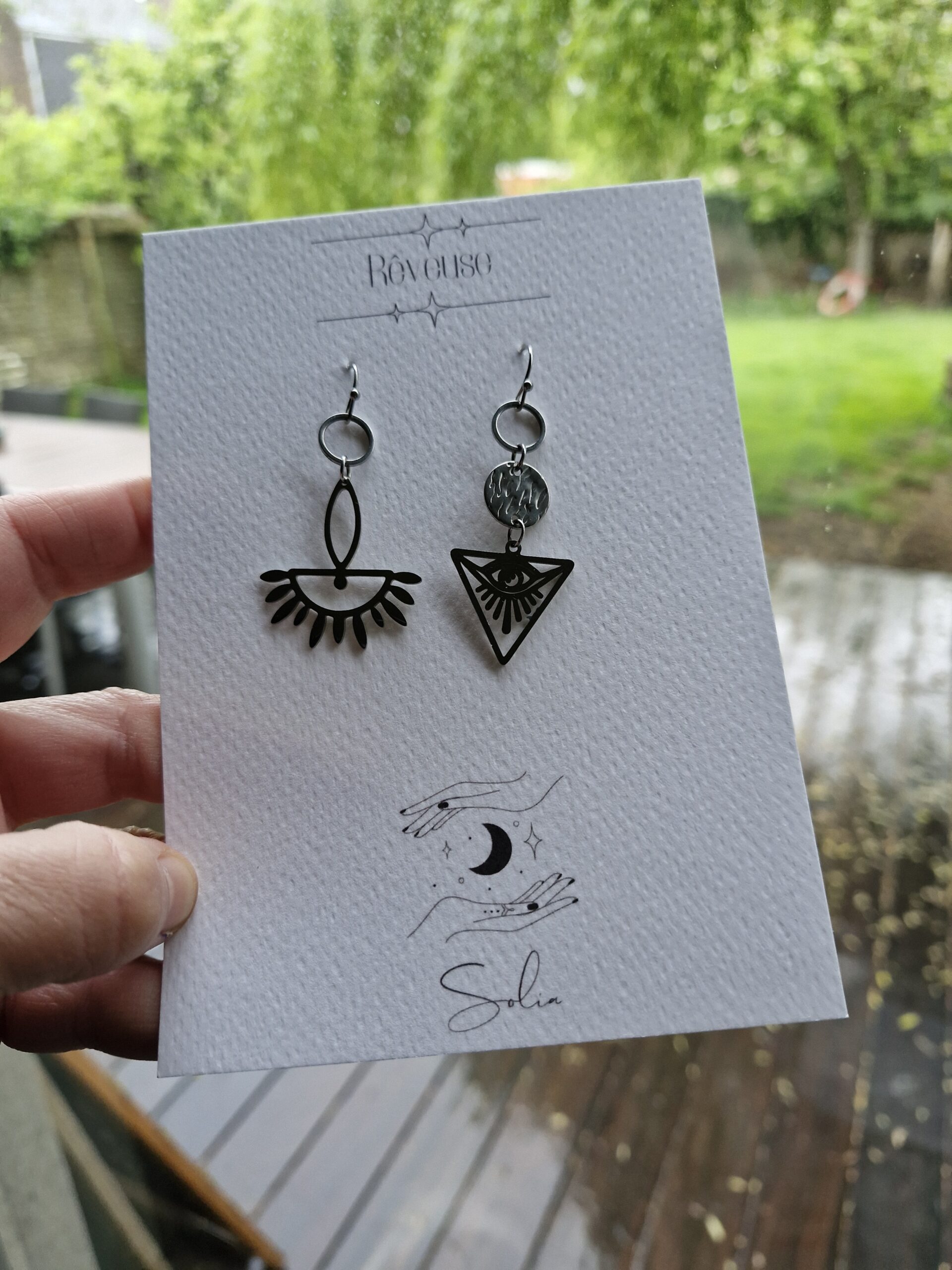 Boucles d’oreilles SOLIA, asymétriques, résine fait-main, sans nickel & anti-allergène