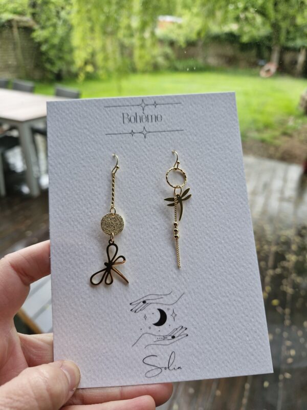Boucles d’oreilles SOLIA, asymétriques, résine fait-main, sans nickel & anti-allergène