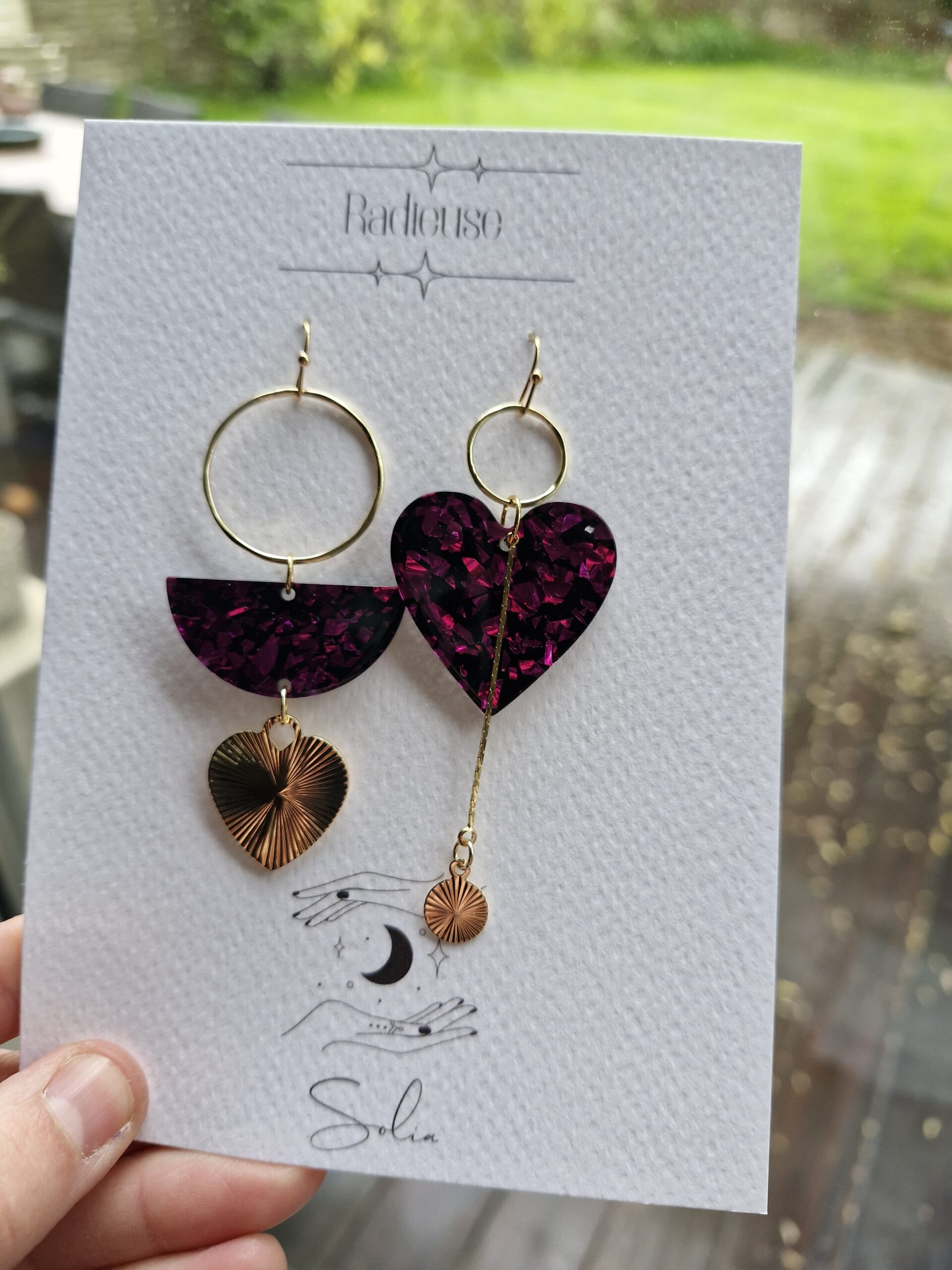 Boucles d’oreilles SOLIA, asymétriques, résine fait-main, sans nickel & anti-allergène